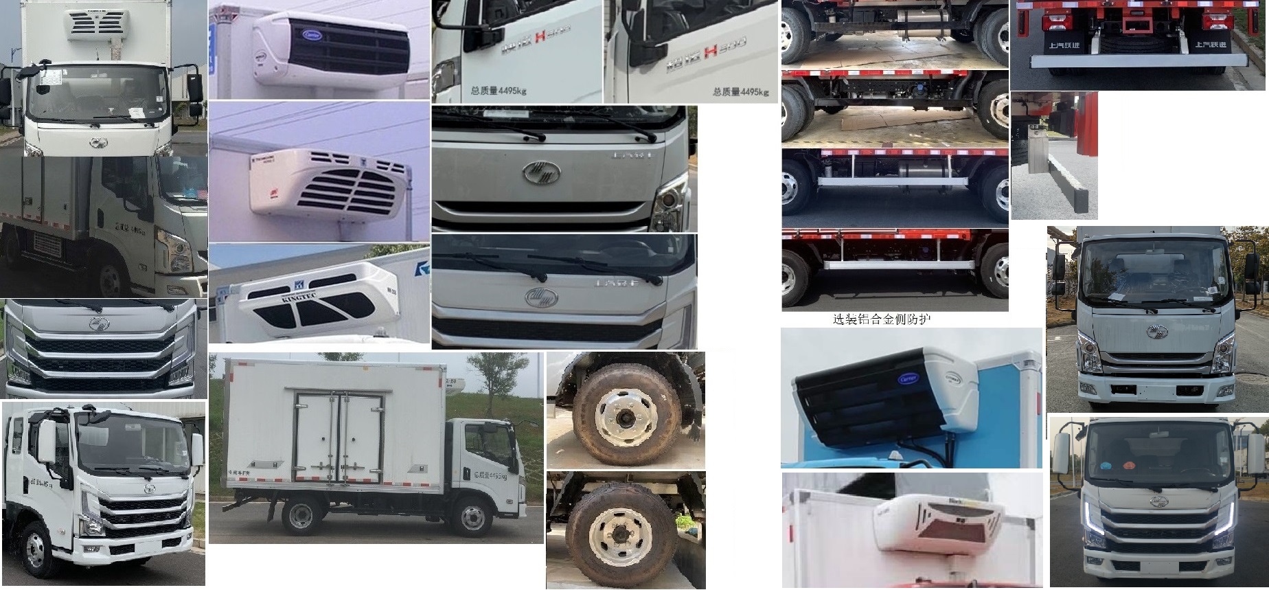 躍進超越層c500自動檔國六冷藏車標準配置:國內知名廠商生產的玻璃鋼,各板塊間用高強度結構膠粘接,配以鋁合金型材鉚接成整體,中間8CM聚氨脂泡沫保溫,廂頂封閉,制冷效果更顯著。不銹鋼門鉸鏈及栓桿。車廂內部尺寸:4090×2300×2300(mm)。整車尺寸:5995×2470×3310(mm)。車廂地板標配防滑花紋鋁板。