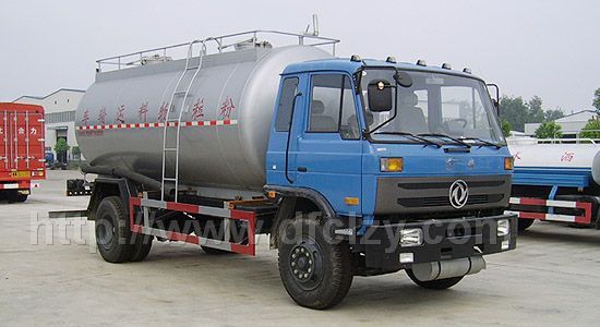 專用性能:粉粒物料運輸車利用本車動力驅動空氣壓縮機, 將壓縮空氣經管道送入密封罐體下部的氣室,使氣室液態化床上的粉粒體懸浮成流態狀,當罐內壓力達到額定值時,打開卸料閥,流動化物料通過管道流動而進行輸送。