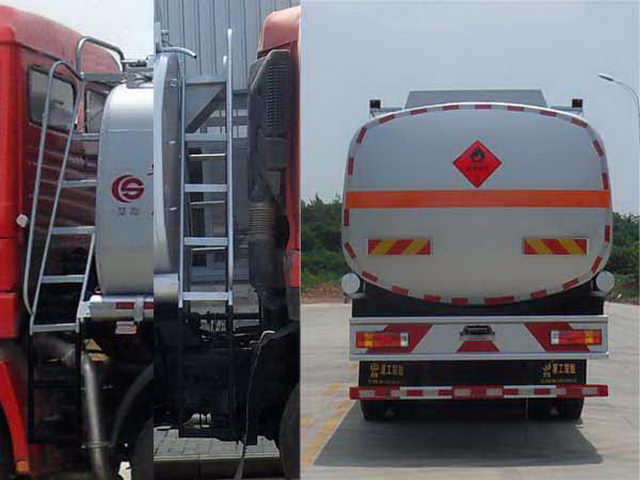 整車備注: 1、運輸介質:汽油,類項號:第3類,密度700千克/立方米,罐體有效容積28.7立方米,罐體外形尺寸9200×2480×1850;加油裝置型號/廠家: 80YHCB-60/山東博山齊魯油泵廠;選裝左右兩側扶梯或后部無扶梯;隨底盤選裝平頂駕駛室。 2、側/后防護材料為Q235,側防護螺栓連接,后防護焊接,下邊緣離地高550mm,截面尺寸100×50mm; 3、隨底盤選裝駕駛室;僅采用CA6DL1-32E4發動機;僅選用子午胎,限速裝置,輔助制動裝置和前盤制動器的底盤;該車應裝具有衛星定位功能的行駛記錄儀;ABS型號/廠家: VIE ABS-Ⅱ/浙江萬安科技股份有限公司,4460043200/WABCO。