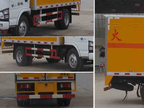 五十鈴爆破器材運(yùn)輸車|防爆車|民爆車上戶噸位4噸,國四排放.廂體頂部密封,不可開啟。采用康明斯發(fā)動機(jī),有燃油公告, 廂體外飾冷軋鋼板,內(nèi)飾防靜電鋁板,底板鋪防靜電膠板,側(cè)壁設(shè)防雨通風(fēng)窗口,帶捆綁固定拉環(huán),煙霧感應(yīng)器,防盜報警開關(guān),靜電帶,滅火器2只,車廂黃色,有危險標(biāo)志,貼有反光標(biāo)識,廂體右側(cè)開側(cè)門,可選裝無側(cè)門廂體、帶隔倉箱體。駕駛室選裝白色,箱長4.15米。其他按國家爆破器材運(yùn)輸車標(biāo)準(zhǔn)執(zhí)行(底盤前盤(碟)后轂、電子限速器、行駛記錄儀、ABS)。