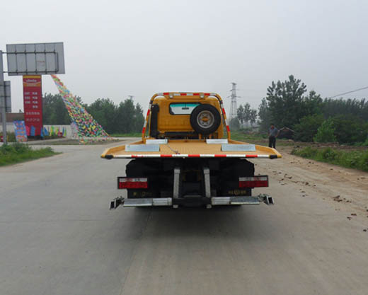 江淮康鈴一拖二平板型道路清障車上裝配置:起重裝置、托舉牽引裝置、液壓系統、電控系統、車體與工具箱等組成,具有起吊、拽拉和托舉牽引等多項功能。