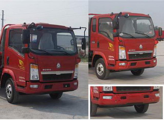 重汽豪沃一拖二平板型道路清障車選裝配置:進口或國產液壓系統;選裝隨車吊機等。清障車警示燈分為工程黃(民用)和紅藍(警用)兩種顏色,我國規定安裝紅藍警燈要在當地有關部門申請警燈使用證及辦理相關手續。