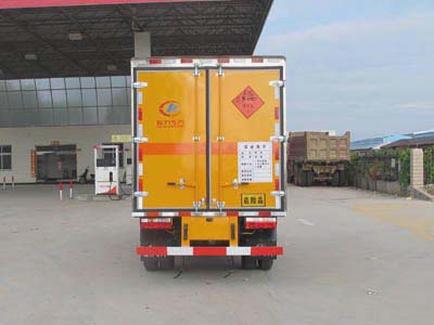 運輸品名:炸藥,雷管,類項號: 1.1D,1.1B。車廂頂部封閉,不可開啟,側防護為螺栓連接,后防護為焊接連接,后部防護裝置斷面尺寸(寬×高):50mm×100mm,離地高度為430mm.發動機型號為HFC4DA1-2C,對應油耗值為15.46.該車裝配具有衛星定位功能的汽車行駛記錄儀,該車裝配有限速裝置,此車僅選用子午線輪胎和裝有ABS的底盤 ,ABS型號:CM4YL,ABS生產企業:廣州市科密汽車制動技術開發有限公司;ABS型號:ABS 8.1 EA106,ABS生產企業: 博世汽車部件(蘇州)有限公司。 |