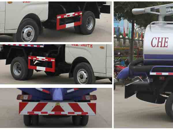 整車備注: 罐體有效容積:2.03立方米,運送介質:液態污物和糞便,密度:800Kg/立方米,罐體外形尺寸(長×長軸×短軸)(mm):2500,2600,2800×1300×900。防護材料:Q235A,連接方式:側防護與副梁焊接連接,后防護與車架焊接連接,后部防護斷面尺寸(mm):200×50×5,后部防護離地高度(mm):500。前霧燈可取消。