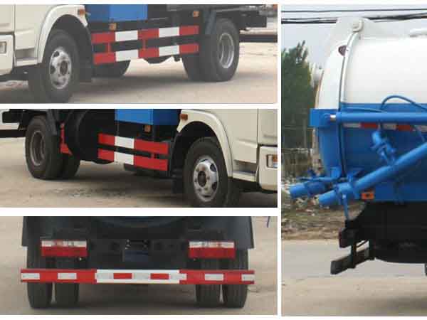 水罐罐體有效容積:2.74立方米,運輸介質: 水,密度:1000千克/立方米,罐體尺寸(mm):長2100,直徑1400。吸污罐罐體有效容積:2.94立方米,運輸介質: 液態污物,密度:900千克/立方米,罐體尺寸(mm):直段長2000,直徑1400。水罐和吸污罐為兩個獨立罐體,清洗功能時用水罐, 吸污功能時用吸污罐,清洗吸污兩種功能不同時使用。防護材料:Q235A碳鋼,連接方式:左右側面及后下部防護均采用焊接連接,后部防護斷面尺寸(mm):100×40×5,后部防護離地高度(mm):420。 隨底盤選裝駕駛室。 |