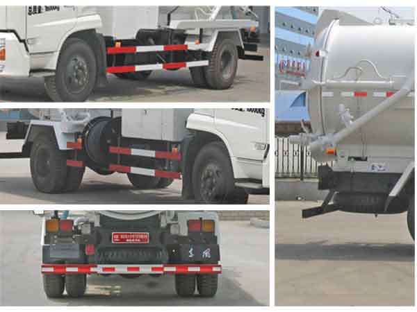 駕駛室前臉選裝擾流罩。水罐裝3300kg,吸污罐裝3050kg;介質:水,密度:1000kg/立方米;液態(tài)污物,密度:900kg/立方米。水罐罐體有效容積:3.46立方米,罐體外形尺寸(直線段長×直徑)(mm):3100×1500(包括罐體留有800mm長度安裝泵室)。吸污罐罐體有效容積:3.54立方米;罐體外形尺寸(直線段長×直徑)(mm)2000×1500。僅選用軸距(mm):4500,4700。因軸距變化而引起的整備質量變化在3%范圍內(nèi),可忽略不計。后懸(mm):2050,1850與軸距(mm):4500,4700一一對應。防護材料:Q235A碳鋼,連接方式:左右側面及后下部防護均采用焊接連接,后部防護斷面尺寸(mm):120×50,后部防護離地高度(mm):500。 ABS生產(chǎn)廠家:威伯科汽車控制系統(tǒng)(中國)有限公司;型號:4460046440。ABS生產(chǎn)廠家:東風電子科技股份有限公司制動系統(tǒng)公司;型號:3631010-C2000。 |
