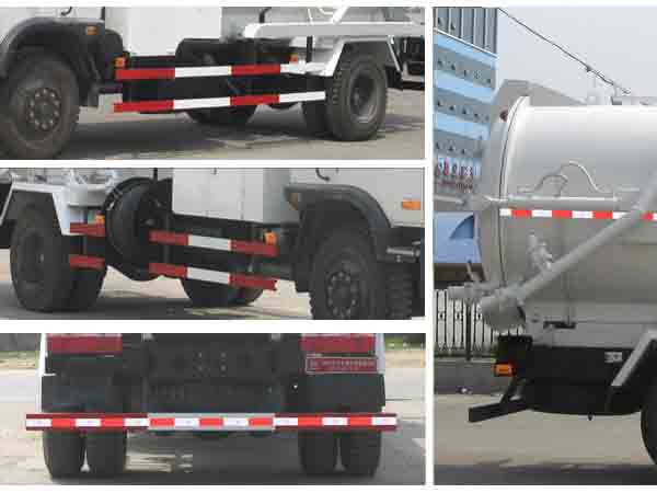 整車備注: 水罐和吸污罐額定載質量均為(Kg):4000,介質:水,1000kg/立方米;液態污物,1000kg/立方米。水罐罐體有效容積:4.2立方米,罐體外形尺寸(直線段長×直徑)(mm)2100×1700。吸污罐罐體有效容積:4.2立方米;罐體外形尺寸(直線段長×直徑)(mm)2100×1700。外形長度尺寸(mm)、軸距(mm)、接近角 (°)和前懸/后懸(mm)對應關系為:7980/4700/23/1250/2030;7980/4500/23/1250/2230;8180/4700/20/1450/2030;8180/4500/20/1450/2230,防護材料:Q235A碳鋼,連接方式:左右側面及后下部防護均采用焊接連接,后部防護斷面尺寸(mm):120×50×5,后部防護離地高度(mm):500, 隨底盤選裝駕駛室對應前懸(mm) :1450,接近角 (°) :20。ABS的型號: 4S/4M,ABS生產廠家: 威伯科汽車控制系統中國有限公司。