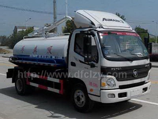 福田奧鈴6方國五吸糞車采用福田公司國五排放環衛車專用二類底盤,康明斯156或142馬力發動機,7.50R16或8.25R16 14PR輪胎.有免征,環保公告.罐體有效容積為5。2立方米,罐體外形尺寸長×長軸×短軸(mm)為:3360/3700×1700×1200,3800/4150×1600×1150。防護材料:Q235A碳鋼,連接方式:左右側面及后下部防護均采用焊接連接,后部防護斷面尺寸(mm):300×50,后部防護離地高度(mm):450。ABS廠家:伯科汽車控制系統(中國)有限公司,型號:44600XXXX0。