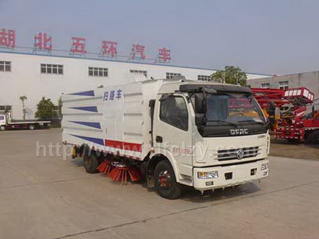 東風多利卡HCQ5082TSLE5國五掃路車采用東風多利卡型國五二類底盤改裝,加裝副發動機、風機、清水箱、垃圾箱、左右立掃、后置吸盤,掃盤降塵系統,液壓系統、專用裝置電控系統和副車架等改裝而成: