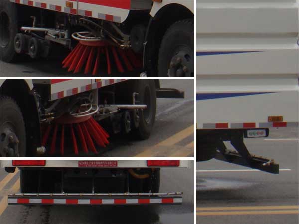隨底盤選裝駕駛室;選裝吸盤中置和雙掃刷結構,選裝后部結構;選裝弧形垃圾箱;側面防護裝置與工作裝置相干涉,故豁免;后下部防護裝置材料材質:Q235,連接方式:焊接加螺栓連接,斷面尺寸(寬×高):50×100(mm),離地高度:370mm;ABS型號為3631010-C2000,生產廠家為東科克諾爾商用車制動系統(十堰)有限公司. |