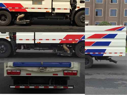 6、垃圾箱容積4m³,內部加裝進口防水材料濾筒,垃圾分類存放,能有效地對樹葉,石子,灰塵進行粗細處理,廂體采用傾翻卸料。