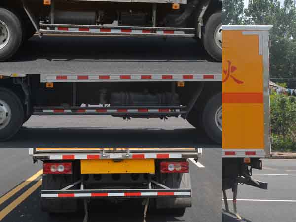 福田奧鈴易燃?xì)怏w廂式運(yùn)輸車廂體外飾冷軋鋼板,內(nèi)飾防靜電鋁板,底板鋪防靜電膠板,側(cè)壁設(shè)防雨通風(fēng)窗口,帶捆綁固定拉環(huán),煙霧感應(yīng)器,防盜報(bào)警開關(guān),靜電帶,滅火器2只,車廂黃色,有危險(xiǎn)標(biāo)志,貼有反光標(biāo)識(shí)。