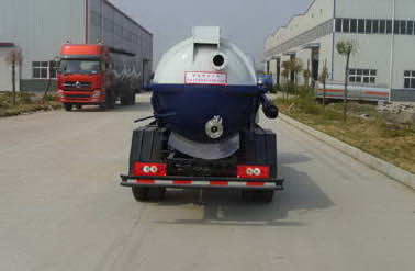 吸污車專用部分由真空吸污泵、取力器、傳動(dòng)軸、水氣分離器、油氣分離器、多路換向閥、罐體、放污閥、視污窗、真空壓力表、管網(wǎng)系統(tǒng)、液壓系統(tǒng)等組成。