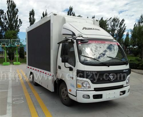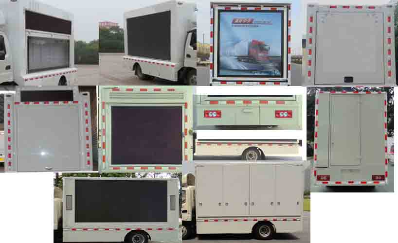福田歐馬可國五流動LED宣傳車標準配置:采用北京福田汽車公司原廠底盤,北京康明斯130馬力國五發動機,五擋變速箱,油剎,7.00R16LT 8PR輪胎,車輛外型尺寸:5995×2190×3300(mm),單側防水P5,P6,P8彩屏,單側液壓舉升,智能字幕2-7副燈畫切換廣告燈箱,5cm合金鋼架箱體,木地板,地板膠,內外電配電箱,循環通風降溫系統,靜音柴油發電機組,控制系統電腦一臺,高級音響一對,功放一臺,控制臺一個。隨屏幕尺寸配置底盤。