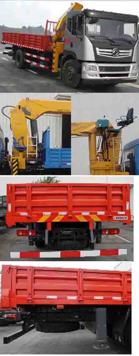 東風本部單橋國五隨車起重運輸車可選裝前面罩,保險杠;選裝貨箱形式;選裝貨箱自卸功能,自卸方式后卸隨底盤選裝駕駛室.僅選用底盤4700mm,5100mm軸距,選裝箱板結構,選裝上/中座椅操作,可選裝直臂式或折臂式吊機,直臂式吊機:型號/吊機質量(kg)/最大起升載荷(kg)/載質量(kg)分別為:(SPS15800,SQ114,QYS-6.3III,SQS-6.3III,URV630,nicoleV630)/2102/4500/3225(3人)/3290(2人);2.(SPS20000,SQ200,QYS-8,SQS-8III,URV800,nicoleV800)/3300/5500/4225(3人)/4290(2人);折臂式吊機的分別為:1.(SQ6.3Z,QYS-6.3Z)/2300/4500/3225(3人)/3290(2人);2.(SQ8Z, QYS-8Z)/3500/5500/4225(3人)/4290(2人);側防護:材質Q235,螺栓連接.后下防護:材質Q235,焊接連接,斷面尺寸120×60mm,離地高度520mm;安裝具有衛星定位功能的行駛記錄儀;ABS型號為3631010-C2000,生產廠家為東科克諾爾商用車制動系統(十堰)有限公司
