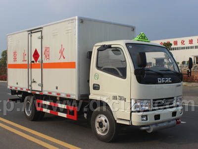 東風多利卡D6爆破器材運輸車為EX/Ⅲ型車輛.運輸品名:黑火藥,壓縮黑火藥,炸藥,雷管.隨底盤選裝前面罩,前保險杠,前組合燈具.車廂頂部封閉不可開啟.廂體側面板選裝開百葉窗,廂體兩側均可選裝開側門,選裝不帶側門,側門型式及位置;選裝不開側門時整車寬度為2040mm,選裝側開門時整車寬度為2080mm,廂體顏色可變化,文字噴涂位置可變化,后部選裝液壓升降尾板,液壓升降尾板收起水平長度300mm.僅采用前盤式制動器,前置排氣管,子午線輪胎,限速裝置的底盤,限速80km/h.安裝具有衛星定位功能。