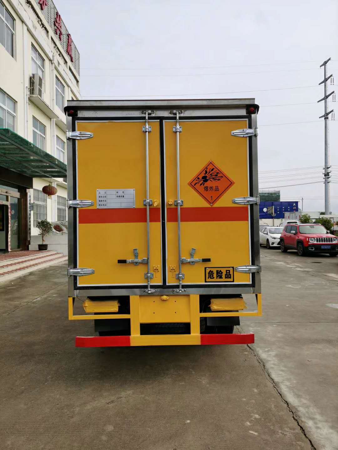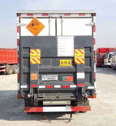 江鈴順達藍牌爆破器材運輸車防爆車/民爆車1.廂體頂部封閉,不可開啟,選裝側門型式及位置,選裝百葉窗;選裝液壓升降尾板,液壓尾板收起水平長度為295mm;2.隨底盤選裝前照燈,前霧燈,前位燈,前轉向燈,前臉,前保險杠,選裝門框下邊框黑色貼膜,選裝新四孔號牌板;整車寬度2115mm,對應貨箱內寬1945mm;整車寬度2075mm,對應貨箱內寬1945mm;整車寬度2040mm,對應貨箱內寬1870mm;整車寬度2000mm,對應貨箱內寬1870mm;3.僅選用裝配子午胎,前盤式制動器;4.ABS系統型號:APG3550500A,ABS系統生產廠家:浙江亞太機電股份有限公司;裝配限速裝置,限制最高車速不得超過80km/h,安裝符合規定的具有衛星定位功能的行駛記錄儀,排氣管前置;5.用于運輸具有獨立容器(瓶)包裝的:黑火藥,壓縮黑火藥,電引爆雷管,爆破炸藥,類項號:1.1D,1.1D,1.1B,1.1D;該車為危險貨物運輸車,車輛類型EX/Ⅱ型;6.防護裝置材料:側面防護及后下部防護裝置材料材質:Q235,連接方式:焊接連接,后下部防護裝置截面尺寸120mm×50mm,離地高度430mm,選裝液壓尾板離地高度380mm;7.采用JX493ZLQ5發動機油耗值為12.55L/100km,JX493ZLQ5A發動機油耗值為12.55L/100km;8.可不選裝側門.