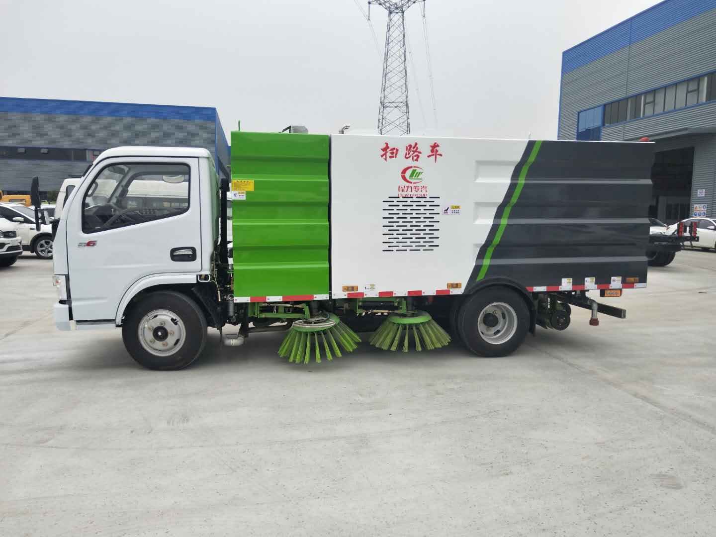 | 東風多利卡國六掃路車采用東風多利卡型國六二類底盤改裝,加裝副發動機、風機、清水箱、垃圾箱、左右立掃、后置吸盤,掃盤降塵系統,液壓系統、專用裝置電控系統和副車架等改裝而成: