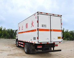 福田時代M6藍牌爆破器材運輸車/防爆車/民爆車廂體外飾外板采用1mm厚冷軋板有一次成型的百葉窗,內飾為導電性能良好的鋁板含透氣孔,內襯為矩形管骨架牢靠穩(wěn)定,內部填充為透氣防潮阻燃的擠塑板,底板和車廂前下部鋪橡膠皮,廂體外部上下鋁合金型材包邊,后門雙開,右側選裝側開門,內部有固定貨物的臥環(huán),外部有靜電帶,滅火器,防火罩,廂內安裝煙霧警報器和門防盜報警器.