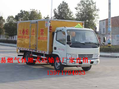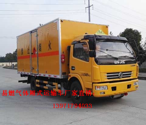 國五易燃氣體(液體)廂式運輸車是在危險品二類底盤基礎上改裝而成。廣泛應用于乙醚、煤氣、石油液化企業,是易燃氣體氣瓶及非易燃氣體氣瓶的專用運輸車輛。