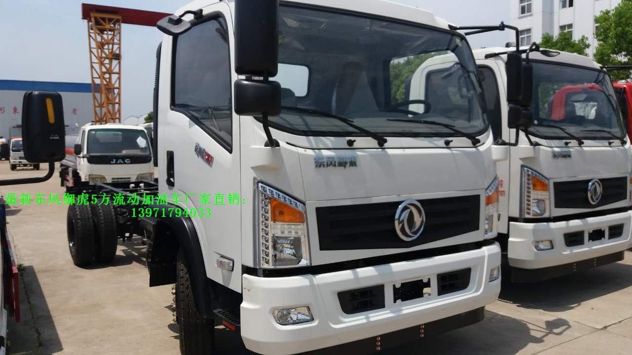 東風御虎國五5方流動加油車采用東風公司本部暢銷產品:東風公司加油車專用底盤(二類國五排放底盤),前盤制動,ABS,行使記錄儀,限速器。鋼絲胎,排氣管前置。有環保和燃油公告,上戶無憂,該加油車為汽油介質。