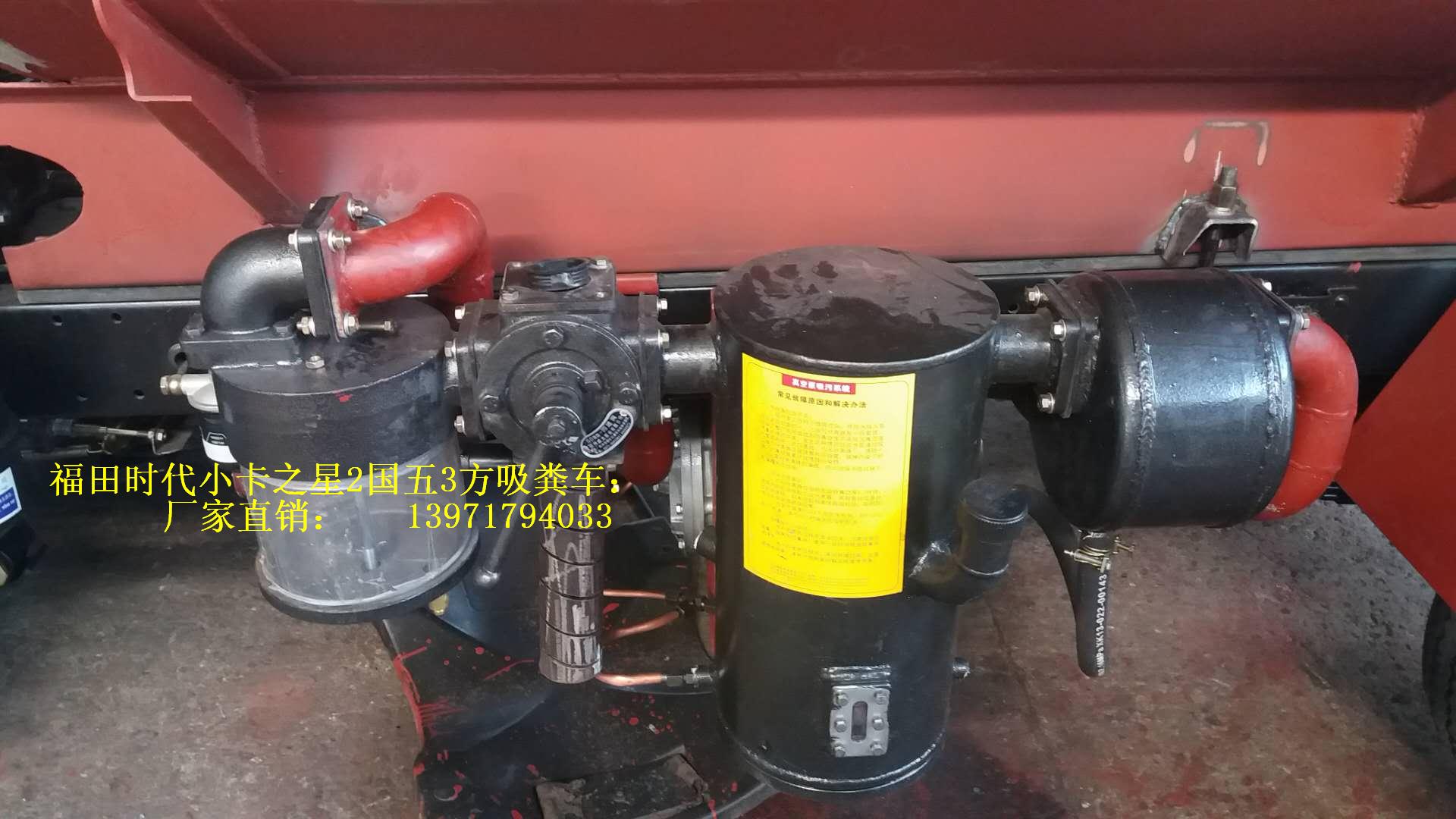 福田時代祥龍3方吸糞車上裝配置:專用部分由取力器、傳動軸、真空吸糞泵、水氣分離器、油氣分離器、多路換向閥、吊桿、糞罐、放糞閥、吸糞槍、清水箱、視糞窗、真空壓力表、管網系統等組成。吸糞車可根據客戶要求加裝灑水功能,水、糞罐可獨立分倉,即可吸糞又可灑水,一車兩用。