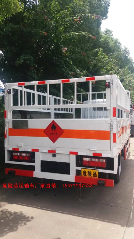 江鈴順達國五易燃氣體廂式運輸車運輸具有獨立容器(瓶)包裝的易燃氣體:液化石油氣,原油氣,壓縮天然氣,乙炔,甲烷,乙烷,丙烷,丁烷,丙烯,丁烯,二甲醚,打火機或打火機加油器(裝有易燃氣體),壓縮氫,類項號:2.1;運輸具有獨立容器(瓶)包裝的非易燃無毒氣體:液化氣體(非易燃,充有氮,二氧化碳或空氣),壓縮氧(氮,空氣,氦,氬,氖),二氧化碳,類項號2.2;該車為危險品貨物運輸車;廂體選裝瓦楞板結構,廂體側面選裝開門型式及位置或不帶側開門,選裝百葉窗,廂體顏色可變化,選裝液壓升降尾板(收起狀態水平長度為290mm);僅采用前輪盤式制動器,前置排氣管,子午線輪胎,限速裝置的底盤,限速80km/h。廣泛應用于乙醚、煤氣、石油液化企業,是易燃氣體氣瓶及非易燃氣體氣瓶的專用運輸車輛。