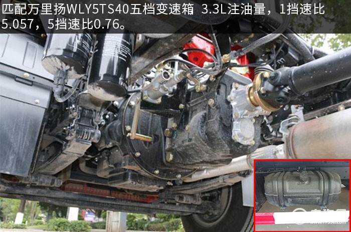 解放虎V國六4.2米易燃氣體廂式運輸車排氣管為前置,配有防火帽。排氣制動采用EGR+DOC+DPF技術路線,不需要燃燒尿素。配有ABS,帶前盤限速裝置,整車限速80km/h。匹配萬里揚WLY5TS40五檔變速箱,3.3L注油量,1擋速比5.057,5擋速比0.76。采用短行程同步器,進擋全同步,換擋更輕便。配備120L阻燃式塑料油箱。該車輪胎選用的是玲瓏輪胎,型號7.00R168PR的胎,3300mm軸距,采用前輪碟剎,5噸級青特1058后橋,速比為4.875。